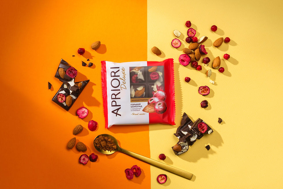 ДИЗАЙН-СТРАТЕГИЯ. Apriori Deluxe – это история о маленькой плитке, которая должна дарить большое впечатление. Поэтому мы сделали ставку на максимальную визуализацию вкусов, сохранив фирменную чистоту и деликатную эстетику Apriori. Что мы сделали: