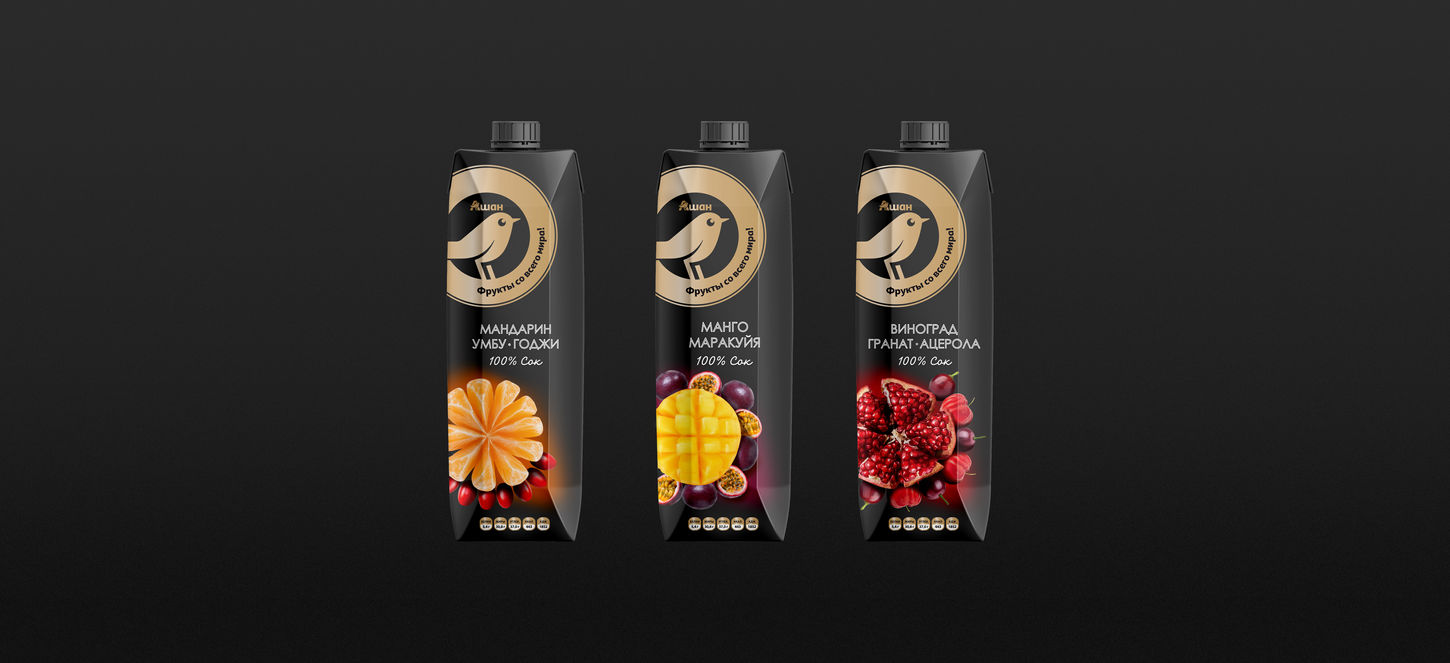 ЗАДАЧА. Создать целостную, современную и структурированную систему упаковки собственных марок, где каждая категория продуктов имеет своё ценовое позиционирование, единый дизайн-код и узнаваемый визуальный маркер. Ключевая идея – использовать главный актив бренда «Ашан»: птичку, многолетний символ доверия по всему миру. Для себя мы сфокусировались на создании системы, которая: