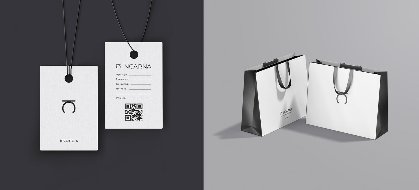 АЙДЕНТИКА. Визуальная идентичность бренда строится на простоте и символизме. Знак Incarna – это минималистичный символ, создающий ассоциацию с кольцом, но собранный из двух букв: I и С. Мы сознательно ушли от перегруженной стилистики, характерной для ювелирного рынка. Айдентика должна была передавать спокойную уверенность, глубину и индивидуальность, а не конкурировать с изделиями. Верстка получилась разреженной, с акцентом на воздух и композицию. Это создает эффект галереи, где каждое украшение – не просто товар, а история, которую бренд рассказывает через key-visual. Мы продумали цветовую палитру, типографику, систему применения символа, упаковку, материалы для маркетинга и витрин.